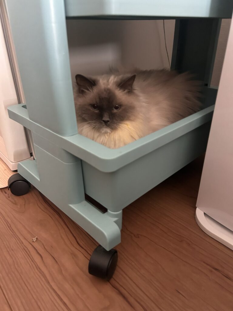 だカーテンの奥でゆっくりしてるペッペちゃん