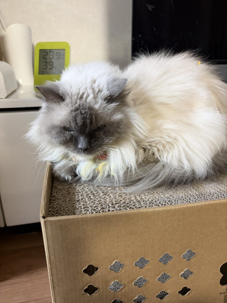 お気に入りは洗濯カゴの中、なペッペちゃん