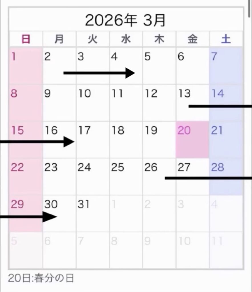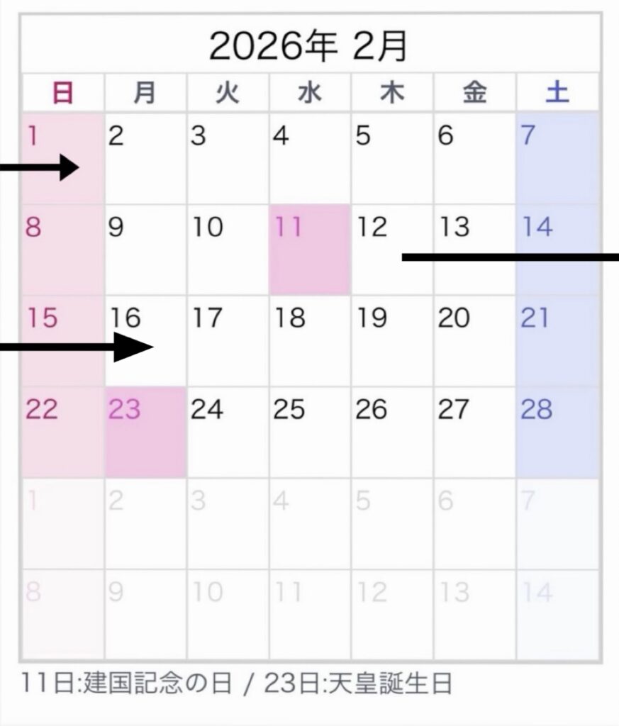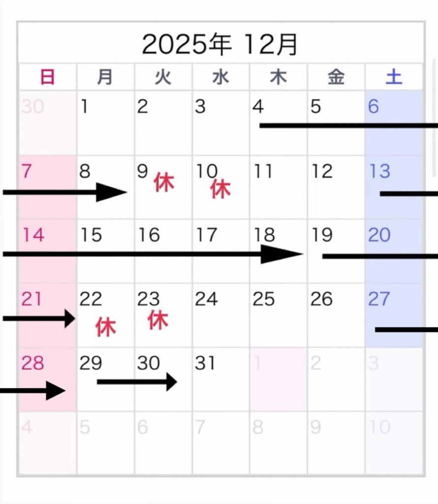 「⇨」がご予約いただいている日となります。