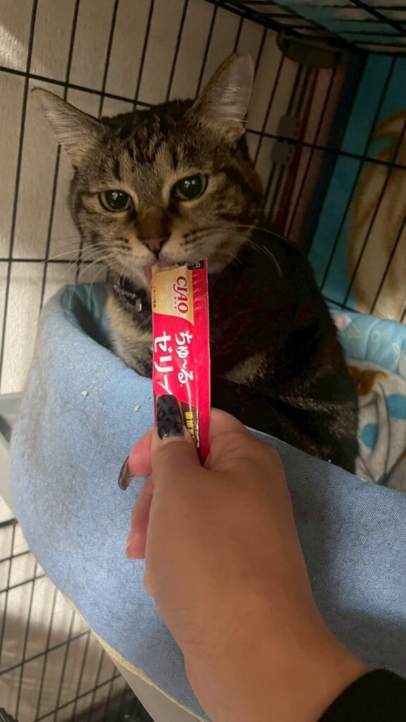 おかあさんの予想通りケージに避難💦