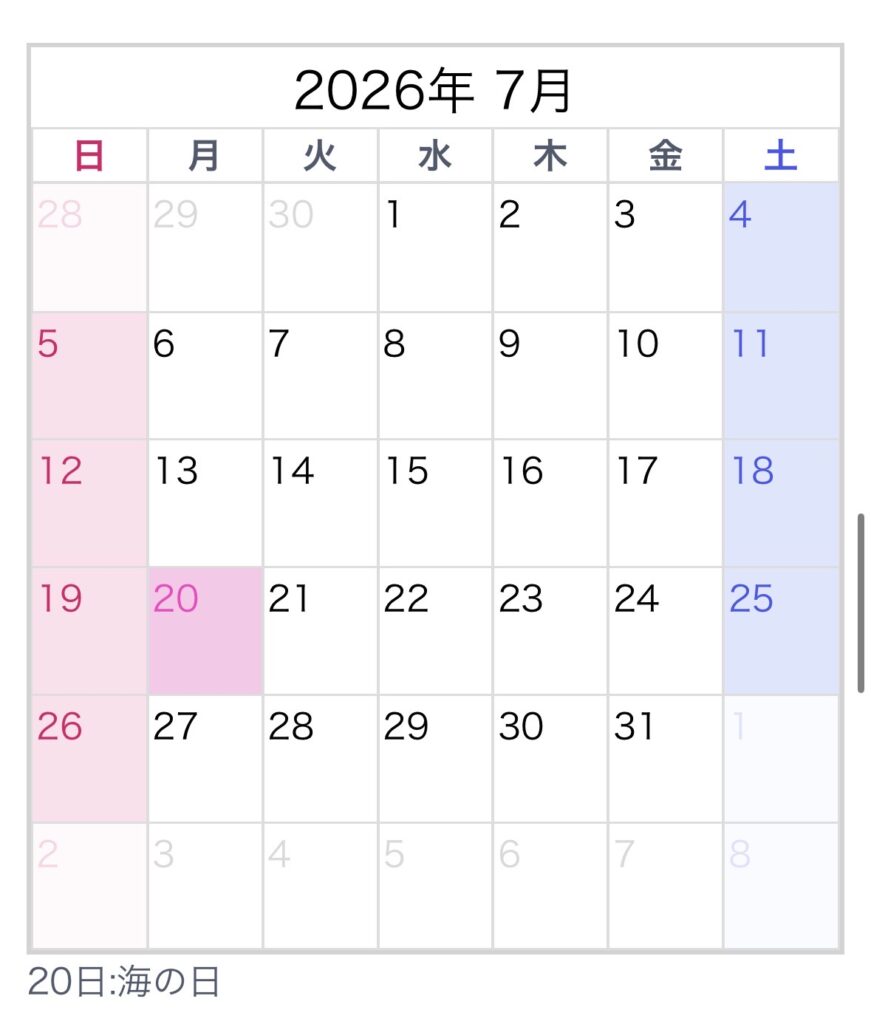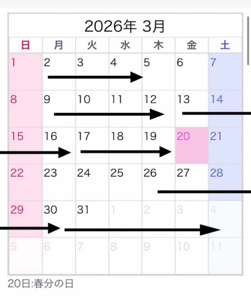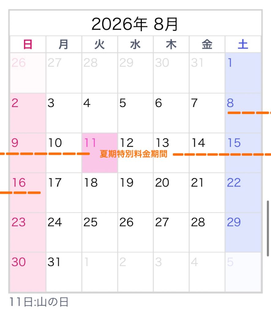 「⇨」がご予約いただいている日となります。