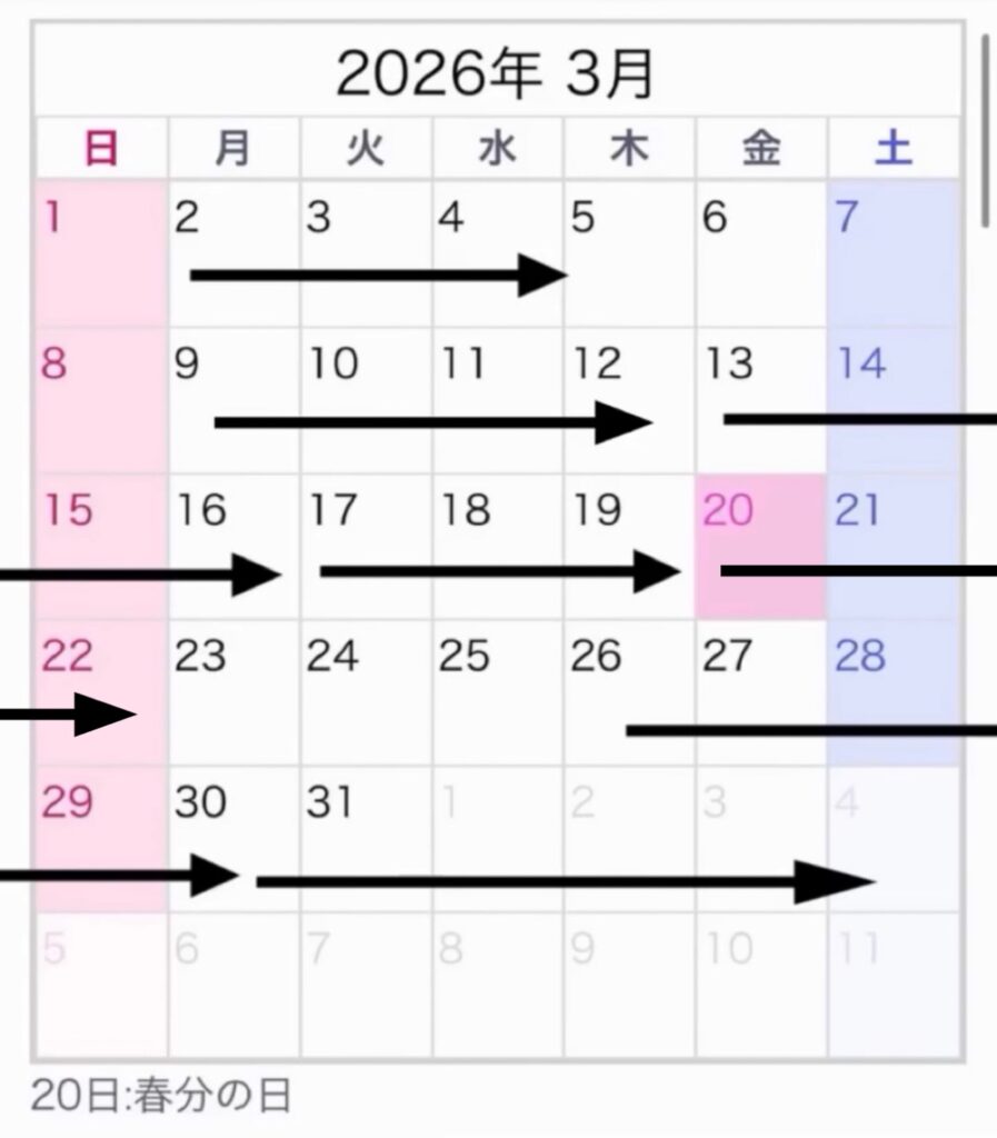 「⇨」がご予約いただいている日となります。