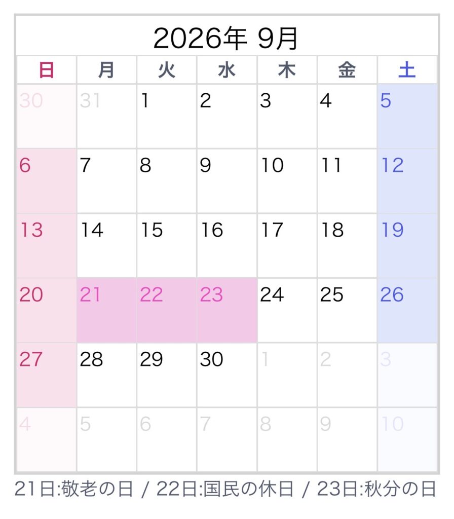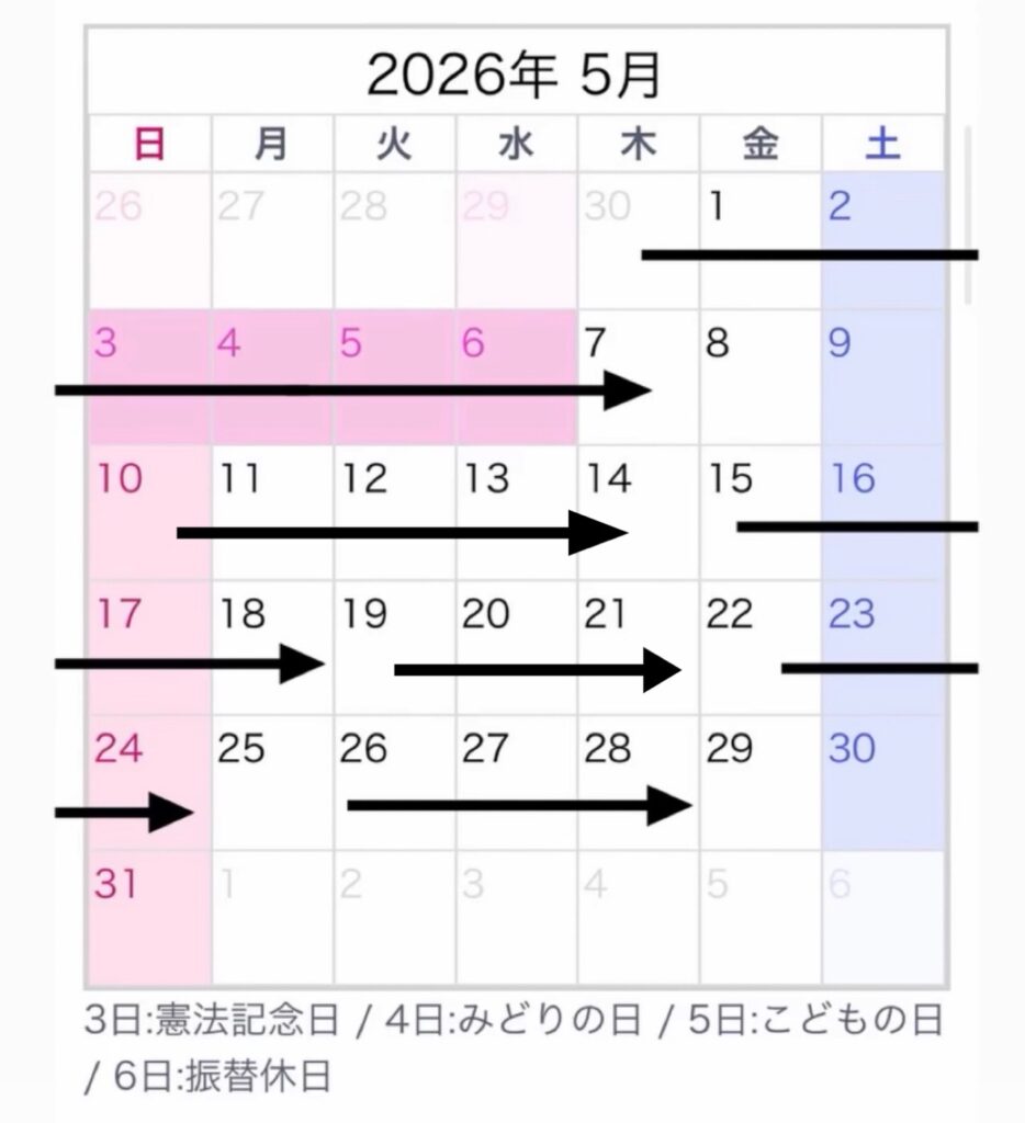 「⇨」がご予約いただいている日となります。